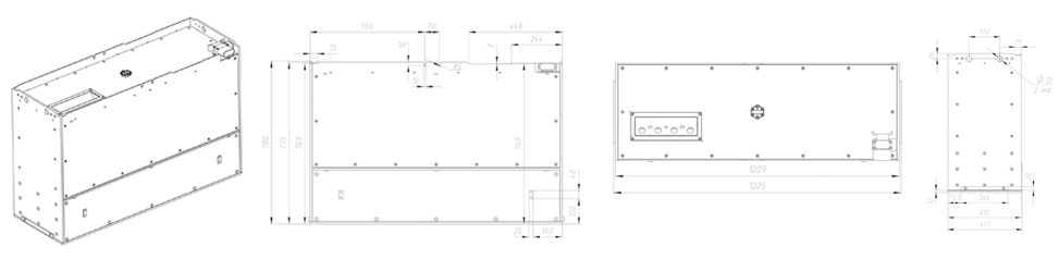 dimensions|Length 1225±2 мм; Width 417±2 мм; height 780±2 мм